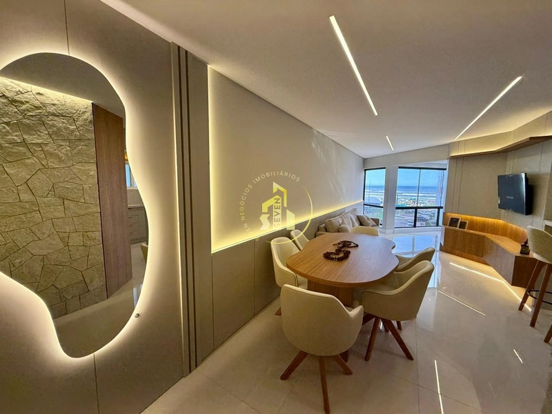 Andar alto com vista para cidade! Apartamento de dois dormitórios totalmente mobiliado e decorado, sendo um suíte, sacada de frente, com vista panorâmica para cidade, amplo living dois ambientes, iluminação e ventilação direta em todos cômodos, acabamento de alto padrão, em porcelanato, gesso e aberturas em pvc que garantem melhor isolamento acústico, apartamento no coração da cidade, poucos metros do mar!